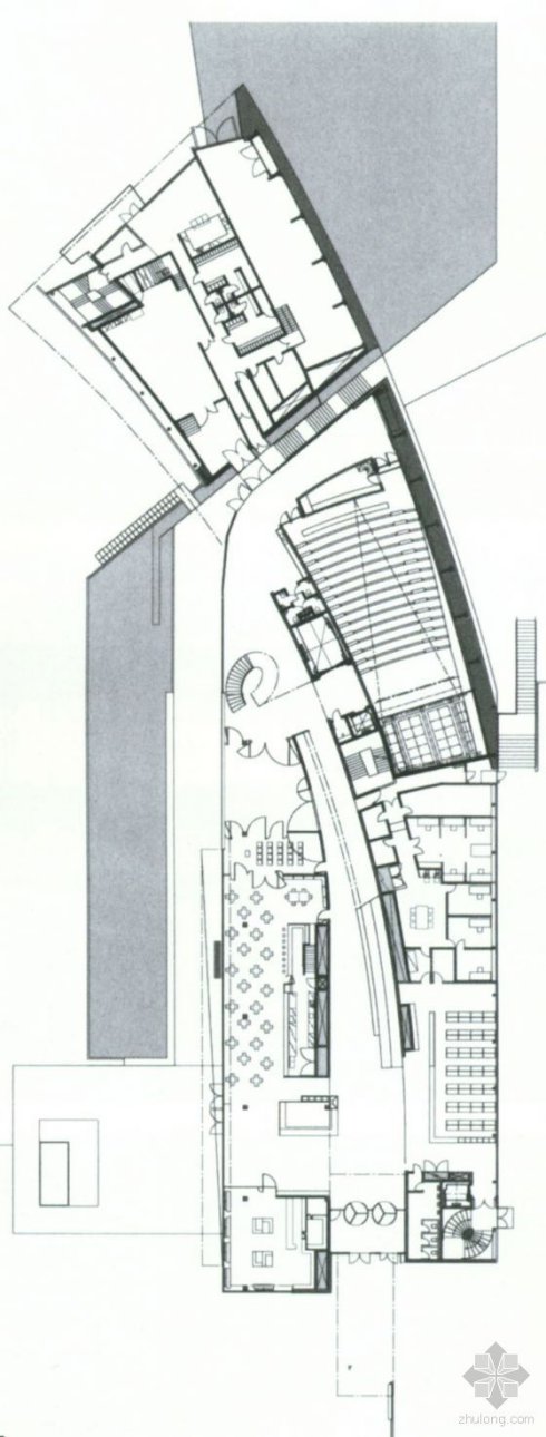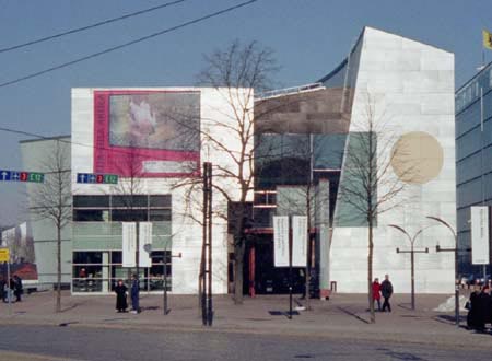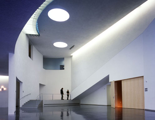 該博物館具有"藝術(shù)論壇"的作用,它是開放的,并靈活適用于各種舞臺活動、表演、舞蹈、音樂和研討會。首層的咖啡廳鄰近花園及門廳,它的位置使其可以適用于一些非正式的活動,如詩歌朗誦、"圓桌"式討論等。報告廳則配備有最先進的音像設(shè)備,它那由連續(xù)的玻璃構(gòu)成的后立面,使人們在經(jīng)過這座建筑時可以從外部的道路上看到其內(nèi)部景象。