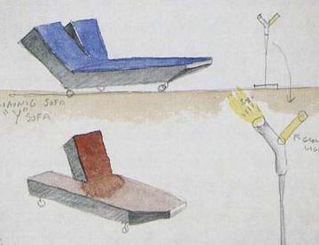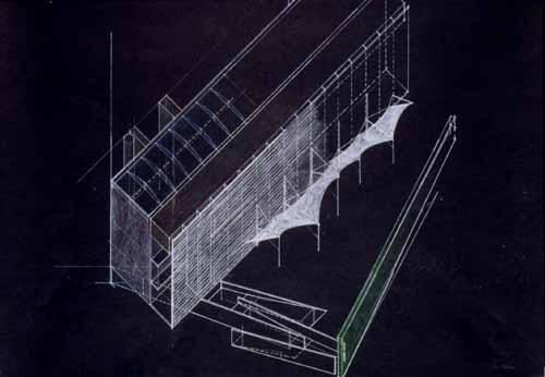 大量運用地上,地面,地下等場地規(guī)劃的約束之內(nèi),變成一串具有前瞻性的雛形都市結(jié)構(gòu)。這種先做透視再做正面投影---引導(dǎo)他創(chuàng)出一種虛構(gòu)的新未來主義建筑。