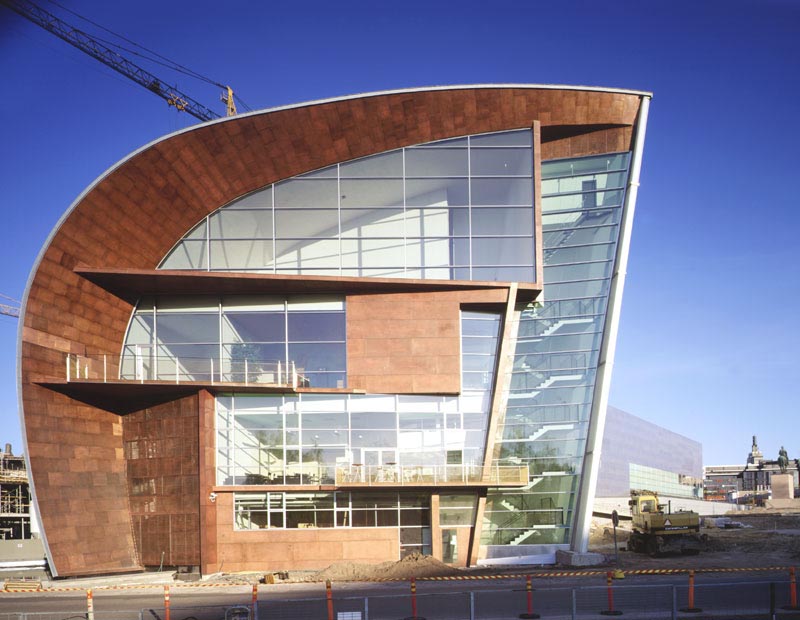 "交錯"的設(shè)計概念來自建筑構(gòu)成與城市和景觀的幾何形態(tài)的交錯融合。城市和景觀的幾何形態(tài)都是在建筑的形式上有所反映。一條含蓄的文化軸線以曲線的方式將博物館與芬蘭大廳聯(lián)系起來,同時它也是一條"自然軸線",將建筑與周圍的景觀和蒂羅灣聯(lián)系起來。