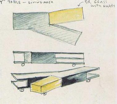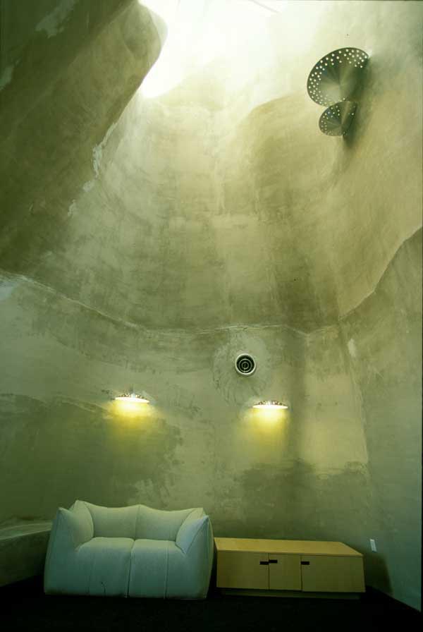 走進住宅,可以看出房子沿坡地步步下降,一處裝有涼棚的甲板突顯在面向海面的位置上。乒壇的屋頂,緊貼坡地的地面,按地形分層的房子,這一切都造成人們對建筑本身有懸離地面的感覺。