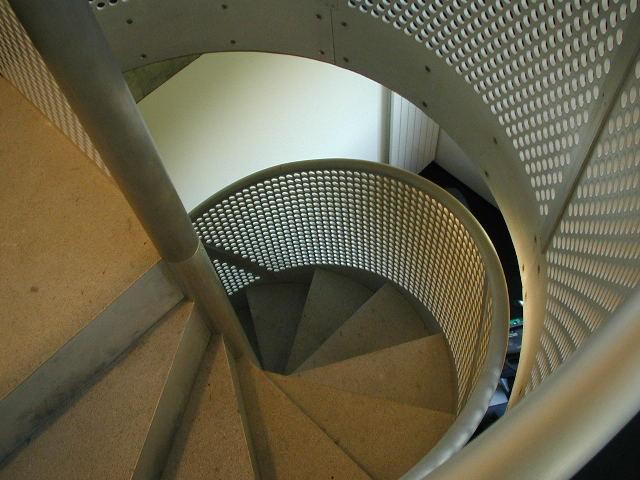 內(nèi)部建造了巨大的樓梯來表達學(xué)生上上下下的路徑,但是結(jié)構(gòu)和空間的限制意味著哪只能被貼在建筑的表面。對于simmons公寓來說,多孔性成為漏斗狀空間的靈感來源,霍爾設(shè)計的貫通的樓板并作為休息室和學(xué)習間。這些漏斗空間分擔了走廊所承受的雙臂荷載。并提供了具體學(xué)習和休息的場所同時也使走廊從滿趣味,一個自由形式的樓梯漂浮在這個空間里,提供了一種有意思的上上下下的形式。
