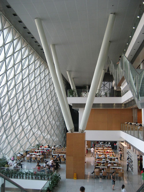 深圳圖書館建筑造型獨(dú)特,構(gòu)思精巧,極富現(xiàn)代感。建筑模式也從傳統(tǒng)模式變?yōu)槿_放、大開間、無間隔的“模數(shù)式”布局。它的落成為深圳這個(gè)年輕而充滿活力的城市增添了一道獨(dú)具特色的文化景觀。
