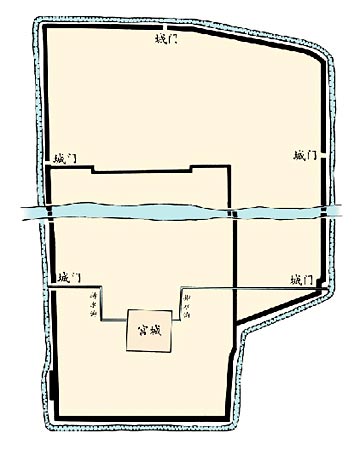 建于周初之曲阜(今山東曲阜),為魯國諸侯都城。平面大體呈矩形,面積約10平方公里。其外垣始筑于西周,有城門十一處,門道寬7~15米,門外兩側(cè)建突出墩臺。宮室在城中偏東北處,有大型夯土臺基多處。手工業(yè)作坊位于城內(nèi)北部及中部,其間散布民居。已發(fā)現(xiàn)城內(nèi)大道十條,以自宮室南通向南墻東門,并延向門外之舞雩臺者為主要之干道。