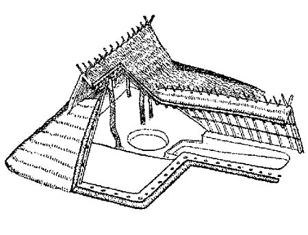 在地面掘出深約1米的方形或圓形淺坑,坑內(nèi)一般用二至四根立柱承托屋架,其結(jié)合用綁扎法。屋頂覆以樹枝及茅草(有的表面再涂泥),下部直達地面。入口為附有門檻之斜坡門道,門道上建兩坡屋頂,例見河南陜縣廟底溝遺址。一般于室內(nèi)中央稍前置火塘,建筑面積約在10平方米左右。實例最早見于河南新鄭裴李崗文化及西安半坡仰韶文化晚期。