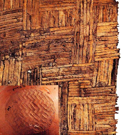 河姆渡新石器文化遺址出土的葦編殘片,用于干闌式建筑鋪墊地板用