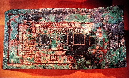 河北平山戰(zhàn)國晚期中山國王墓出土的《兆域圖》,鑲刻在銅版上