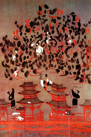 壁畫也是出現(xiàn)在漢墓中的重要藝術(shù)表現(xiàn)之一,如內(nèi)蒙古和林格爾東漢墓,不但表現(xiàn)了墓主身居高位的顯赫,更重要的是使我們部分了解到當時城市、官署、道橋等許多建筑的情況。河北安平縣逯家莊漢墓壁畫,則使人們看到一座大型塢堡內(nèi)部的稠密建筑、庭院及高大塔樓的形象。至于反映田園勞動、射獵、出行、宴飲等內(nèi)容的壁畫就更多了。