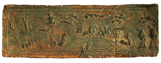 漢代畫像磚上所表現(xiàn)的拱橋,上有車馬行人,下有船只通過