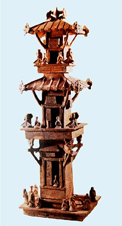 我國古代柱梁式木建筑之高層結(jié)構(gòu),大概在東漢中期已開始出現(xiàn)。雖實物不存,但自壁畫、畫像石及建筑明器等多方面的間接物證,可予說明。四川畫像磚及河南、河北諸地出土的陶樓,平面均為方形,層數(shù)自三至五層不等。甘肅等地塢堡明器中央的塔樓,也都大體如此,這大概就是當時的極限了。已見諸例,其樓體皆有顯著收分,樓層挑出平座,最上覆以單檐四坡屋頂。在局部形象上,各式出跳斗拱和斜撐,平座勾闌紋樣,各層窗扉欞格,屋脊起翹與裝飾等,都給了我們許多鮮明且具體的形象,并得以與現(xiàn)存的漢代建筑實物(如墓闕)相互印證。反之也說明,許多明器的形象是相當寫實與可靠的。