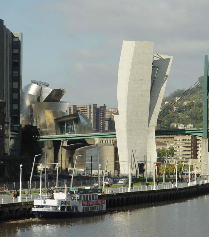這個(gè)作品中盈溢的那種暗合于西班牙文化的、既激揚(yáng)又沉靜的詩意,不僅傾倒了全世界的萬千民眾,也折服了無數(shù)對蓋里滿懷偏見的建筑師。當(dāng)然,最幸福的應(yīng)屬畢爾巴鄂市的居民,當(dāng)天起涼風(fēng),日影飛去,整個(gè)博物館因光陰的流轉(zhuǎn)而幻化出奇異的迷彩,河面粼波浩蕩,光影上下相逐,整座城市隨一棟熠熠閃爍的建筑舞蹈起來的時(shí)候,他們是否已淡忘了城市痛苦的過去,不知今夕何夕?
