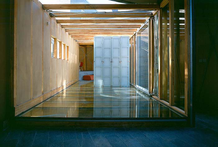 怪院子則以傳統(tǒng)的合院住宅為主體,提出兩種不同角度的"誤讀"方式?;旧?,配置從正統(tǒng)的方場空間,轉(zhuǎn)而以配合基地地勢特性與視線方向性而加以調(diào)整。概念上,則維持了傳統(tǒng)中庭屬性-以平淡而內(nèi)化的環(huán)境提供一個(gè)舒適且具私人領(lǐng)域感的空間,卻同時(shí)以開放社交空間的手法,引進(jìn)外界渾沌的環(huán)境來消灰原有的空間感。另外,本設(shè)計(jì)同時(shí)強(qiáng)調(diào)了現(xiàn)代房屋因應(yīng)不同使用者及活動(dòng)的可調(diào)整需求。因此,社交空間并不存在某個(gè)特定的機(jī)能分區(qū)內(nèi),而比較像是一個(gè)多用途空間,長條的服務(wù)區(qū)則比鄰一側(cè)。 可由滑軌屏風(fēng)分隔成不同的次空間以符合不同的團(tuán)體規(guī)模,讓空間中的活動(dòng)得以交流、重疊或隔離?,F(xiàn)代與傳統(tǒng)的空間概念在此相互交融于同一個(gè)中庭空間之內(nèi)。