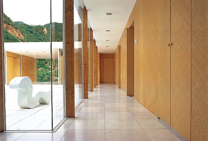 為了裝配模矩化的?砭擼?頤竅妊芯恐泄?乖熘械鬧剖匠唄胗氬牧?。矐仰?希?詒檠暗鋇氐墓こе?螅?故俏薹ㄑ盎裎頤竊詮?サ?砭咦≌?諧J褂玫?×4木頭掛釘及結(jié)構(gòu)性合板(stuctural plywood)。但同時,卻讓我們不經(jīng)意地發(fā)現(xiàn)另一種材料,就是竹制合板。這類合板通常被用來做為混凝土模板,漂亮刨光外皮呈現(xiàn)出波浪花紋,掂在手中的竹片顯得結(jié)實而頗具量感,類似日本使用的結(jié)構(gòu)飾板,強度卻更大。我急忙帶了一個樣本回日本測試,結(jié)果與當初推測相符,竹制合板在結(jié)構(gòu)上的確比我們熟悉的結(jié)構(gòu)飾板堅固。我相,倘若可以將竹條壓疊成合板,自然可制成竹LVL(膠合板)。這表示,本案的構(gòu)造系統(tǒng),即有可能以竹子取代原先熟悉的材料,而且,所有的內(nèi)外墻及地板粉光都可在竹板施作而維持材料的一貫性。