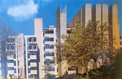 康作為一個(gè)建筑家是成功的,在建筑行業(yè)擁有無比崇高的聲譽(yù),然而,作為開業(yè)建筑師的康的命運(yùn)卻很悲慘。學(xué)校畢業(yè)后的前3O年,他的生活是一段并不令人羨慕的苦苦奮斗經(jīng)歷。他的成名作是耶魯大學(xué)藝術(shù)畫廊的擴(kuò)建項(xiàng)目,在此之前,沒有多少重要作品問世。藝術(shù)畫廊這個(gè)項(xiàng)目是既照顧歷史環(huán)境,又竭力求新的二元做法,是傳統(tǒng)與現(xiàn)代的交織,在這種交織的過程中,康從幼年起蓄積的文化素養(yǎng)終于迸發(fā)出異彩。雖說建筑學(xué)是老人的職業(yè),但象康這樣年過半百才脫穎而出的也很少見。成名后的康本可以利用自己的聲名和當(dāng)時(shí)現(xiàn)代運(yùn)動(dòng)改道轉(zhuǎn)轍的時(shí)機(jī),給自己掙來更多的業(yè)務(wù),名利雙收。然而,他卻仍然十分認(rèn)真地對(duì)待每個(gè)設(shè)計(jì),有時(shí)甚至顯得遲緩,以致失去不少機(jī)會(huì),并使他的小事務(wù)所難以維系。在他死后,事務(wù)所債臺(tái)高筑,瀕臨破產(chǎn)的邊緣。