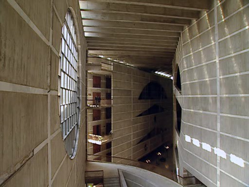 在肯尼迪圖書館項(xiàng)目中,如果成立一個(gè)建筑評(píng)判團(tuán),單單就建筑本身而言,他們很可能會(huì)選擇路易 · 康??嫡驹诘诙F(xiàn)代主義的前沿,重新解釋著包豪斯風(fēng)格嚴(yán)肅的建筑遺產(chǎn),他設(shè)計(jì)建造的理查茲醫(yī)學(xué)研究大樓使貝聿銘設(shè)計(jì)的全國(guó)大氣研究中心相形見做拙 , 然而,康生性靦腆,熱衷于空想,不時(shí)陷入形而上學(xué)的沉思,而且舉止笨拙。“ 在建筑業(yè)中,傳信人本身通常就是一種信息??蓱z的路易·康是他那個(gè)時(shí)代具有遠(yuǎn)見卓識(shí)的建筑師之一。他有話要說,卻無法表達(dá)。他滿臉疤痕地站在觀眾面前,嘴里咕噥著神秘難懂的字眼。他不是那種輕而易舉就能得到別人愛戴的人。而貝一走進(jìn)房間,光芒也隨之而來。他精力充沛,信心十足,令人為之傾倒。換了你,會(huì)選擇誰呢?”(斯賓羅·科斯托夫)