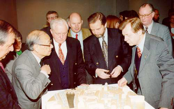 然而貝聿銘自60年代以來已不再參加任何項目的競標,而且在1990年底宣布退休離開他的設(shè)計公司(Pei, Cobb, Freed & Partners)后只是有選擇地接受極少的項目。按德國建筑師協(xié)會的規(guī)定,凡公共建筑的設(shè)計委托必須通過競標方式甄選建筑師?;谪愴层懖辉竻⒓痈倶撕椭唤邮茏约哼x擇的項目的態(tài)度,德國當時的總理赫爾穆特·科爾(Helmut Kohl)打算效仿法國總統(tǒng)弗朗西斯·密特朗(Fran?ois Mitterrand)在決定盧浮宮計劃時不執(zhí)行1977年以來重大工程應(yīng)舉辦競標的規(guī)定,而破例直接委托給貝聿銘的做法。1995年5月當?shù)聡鴼v史博物館方面第一次向貝聿銘詢問,是否能在柏林為德國歷史博物館設(shè)計一座新館時,貝聿銘表現(xiàn)出極大的興趣,但有保留地未予答應(yīng)。當年秋季貝聿銘被安排在波恩的總理府同科爾總理見面。兩人談?wù)撝率锥及亓值膯栴},首都的角色,文化在世界政治中的角色。最后科爾總理出人意料地拉開一個抽屜,里面是一架折疊式電唱機,會面在一曲莫扎特的賦格曲中結(jié)束。一個極少有的令人難以想象的場景,但這時人們可以感覺到他們兩人已達成了默契。
