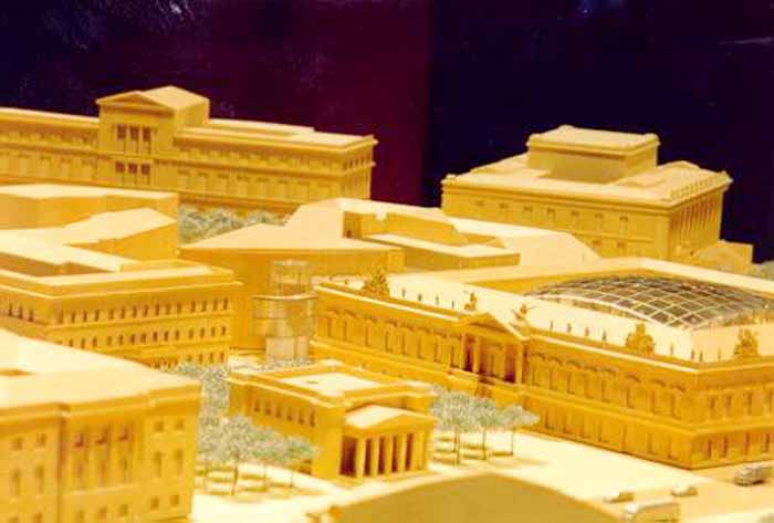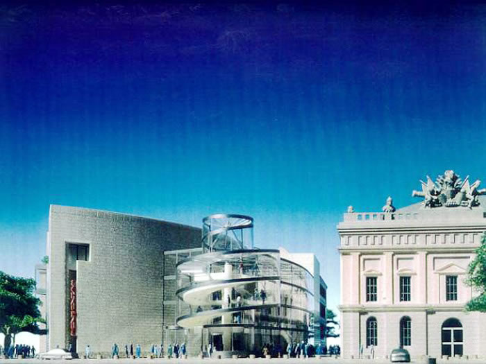 1988年6月米蘭的建筑師阿爾多·羅西(Aldo Rossi, 1931-1997)的設(shè)計一舉中標。但接踵而來的一系列事件,如1989年11月柏林墻被拆除,1990年10月東西德重新統(tǒng)一以及1991年遷都的決定作出等,使得新建歷史博物館的計劃擱淺。1992年羅西規(guī)劃設(shè)計的歷史博物館原址也被視為不合適,因為那兒將要建造新的德國總理府。