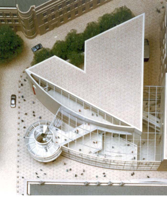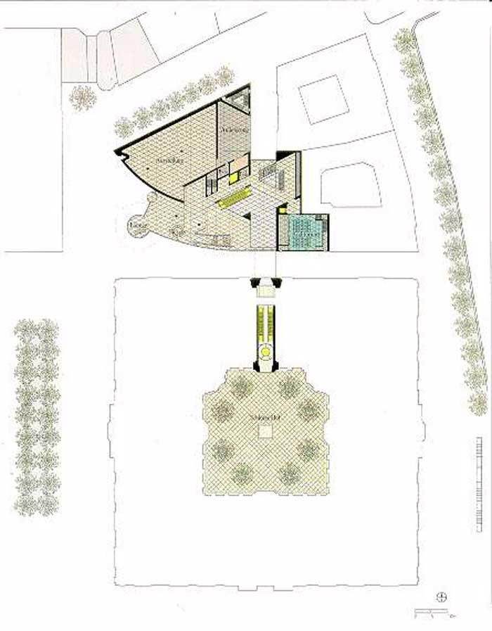 如同貝聿銘在答復盧浮宮項目之前首先要花幾個月時間,對建筑任務(wù),建筑的和政治的環(huán)境作一番調(diào)研后才能給出最后的回答一樣,貝聿銘開始在這段時期多次到柏林,有兩次甚至隱姓查訪,為的是不受他人評論的影響,親身體驗判斷出問題的癥結(jié)。多次調(diào)研后貝聿銘得出了由新瓦赫到七葉樹小樹林,到軍械庫再經(jīng)島橋到博物館島的這樣一組吸引人的城市建筑群組合,這時的貝聿銘對如何設(shè)計好歷史博物館新館已有了概念,并作好了接受挑戰(zhàn)的準備。1996年6月26日德國議會的財政委員會批準了建造歷史博物館新館的計劃。贊成直接委托貝聿銘為新館作設(shè)計。這是德國建筑史上第一次不經(jīng)招標而有聯(lián)邦總理親自決定委托建筑師設(shè)計的建筑。一座公共建筑物不經(jīng)招標而直接委托建筑師設(shè)計的做法立刻招來了專業(yè)人士們的激烈批評,可當貝聿銘1997年1月17日公開展示和介紹他的設(shè)計方案后,這類批評聲便銷聲匿跡了。貝聿銘以他的第一次方案介紹贏得了文物保護專家們的贊許和對現(xiàn)代建筑物建在古老建筑環(huán)境中的支持。德國的報紙也以驚嘆的口吻評論貝聿銘的新館建筑。1997年1月17日的《柏林日報》評論道 “貝氏的設(shè)計填補進了軍械庫后面的小尺度空間,然而卻形成了一個完全獨立的,沒有歷史建筑物襯托也極具高雅的水晶體?!?997年1月20日的《法蘭克福日報》也寫道 “被譽為空間魔術(shù)大師的貝在柏林成功地將新老建筑完美地結(jié)合在一起,并將一個偏僻的和不起眼的地方變成了吸引人們樂意前往的高貴之處?!?/P>