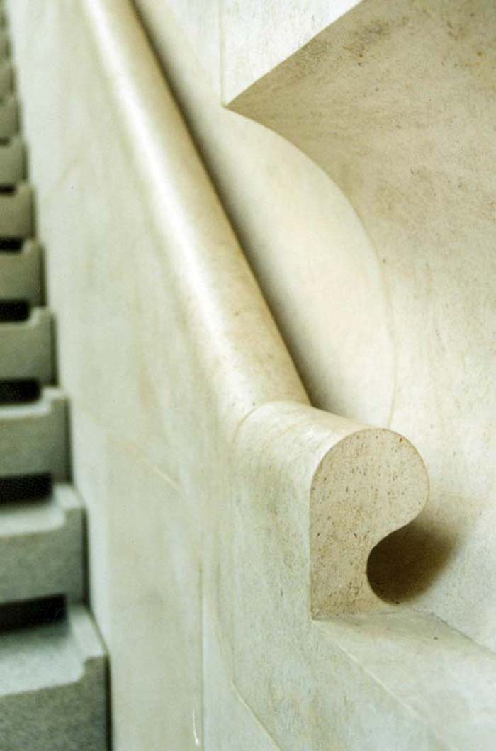 [page]在按照設(shè)計方案的實施過程中貝聿銘對材料的質(zhì)量,加工和建造都提出了極高的要求。這些貝聿銘對美學的高要求給項目的合作者,專業(yè)規(guī)劃人員,建筑管理人士以及實施建造的建筑公司以很大的壓力,但這些精確的建造要求和嚴格的材料選擇正是貝聿銘創(chuàng)造出杰出作品的秘密所在。在建造過程中也常常有許多技術(shù)方面的,人員和政治方面的困難和阻礙要克服。甚至有時情況到了幾乎找不到解決辦法,項目面臨落空的令人擔憂的局面。只是在所有項目的參與者齊心合力和堅定不渝的努力下,才使新館的建設(shè)大功告成。在一次采訪中貝聿銘被問到,在項目完成時什么對他來說是最美好的。貝聿銘回答道:“對那些克服種種阻礙的建造過程,對我所面臨過的所有困難和對那些在這當中我所得到的各種人士的幫助,尤其是我的項目合作者和委托人的回憶常常是我最大的享受?!睂τ谪愴层憗碚f,那些同建筑委托人進行深入的討論是對建筑取得成功的極為重要的和起決定性作用的因素。