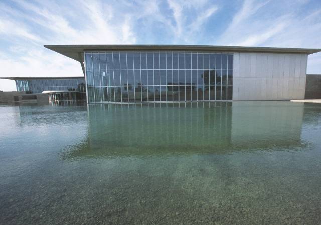 在德國杜塞爾多夫郊外的霍姆布洛伊的美術(shù)館,是一個世界稀有的“公園”美術(shù)館。在二十幾萬平方米郁郁蔥蔥的森林中,十幾棟展示室就像消融在樹叢中一樣散落布局,在那里陳列著雕刻家歐文?希利克的作品。在霍姆布洛伊以西約一公里的北約導(dǎo)彈發(fā)射基地的遺跡上,將建設(shè)新的美術(shù)館,其中之一就委托了我們進行設(shè)計。這就是蘭根基金會/霍姆布洛伊美術(shù)館設(shè)計的開端。