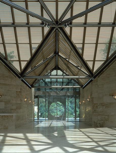 “美秀美術(shù)館”由著名建筑師、美籍華人貝聿銘設(shè)計(jì)的美術(shù)館,榮獲了在瑞士的國(guó)際構(gòu)造工學(xué)會(huì)頒發(fā)的‘2002年度最佳構(gòu)造獎(jiǎng)’。日本京都市以東琵琶湖南面的信樂(lè)山深處、美秀自然保護(hù)區(qū)內(nèi),美麗如“香格里拉”“桃花源”。為了和群山秀美的自然景觀相協(xié)調(diào),“美秀美術(shù)館”整座建筑80%造在地下……”