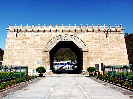 明代陵墓制度的最大變化在于將唐宋兩代的上宮、下宮制取消,即取消皇帝死后在陵區(qū)設置寢宮(即下宮)由皇帝生前的宮人守陵的制度,只保留陵墓中具有的祭祀功能的部分,這無疑是一個進步。同時,明代陵墓又簡化了唐宋方形陵體四向辟門立闕、四隅設角樓的布局,改用圓形陵體,單向出門,又無高大闕臺的簡潔而緊湊的布局。