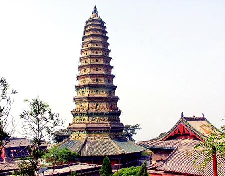 綜觀元明時期的宗教建筑,其中不乏巧構和精致者。元代的北京居庸關云臺,本是金剛寶塔的基座,但其造型穩(wěn)重,跨街而踞,券洞外沿裝飾呈孤形,洞內卻是五邊折角式,且用六種文字刻寫佛經和浮雕佛像,令觀者驚嘆。元至正年間修建的山西五臺縣西關的廣濟寺,其大雄寶殿的檐柱頭塑有鹿角獸頭或獨角獸頭,頗為稀見。在建筑手法上,元代工匠也有獨到之處,如山西洪洞廣勝下寺山門的雨檐和前殿的大爬梁、人字梁,都不同一般,具有獨創(chuàng)性。而與該寺一墻之隔的水神廟則是滿墻元代壁畫,內容沒有天界的神秘,卻充滿人間生活氣息。建于明代的飛虹塔矗立在廣勝上寺的殿前,外型勻巧,通身鑲嵌各種琉璃飾件,色澤絢麗。該寺的格子門窗更是明代小木作的佳作,是用預制的格子花穿組而成的。