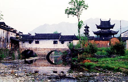 在明代風水中,“水口”是一個重要題目,多數(shù)風水書對此都有論述。但此時水口已專指村鎮(zhèn)水流出口處,由于村鎮(zhèn)道路入口多設在此處,宗祠、亭閣、橋梁等也集中于此,因而形成為村鎮(zhèn)內最重要的關鍵地段,也是居民的公共活動中心。這種現(xiàn)象在皖南徽州地區(qū)最為典型。