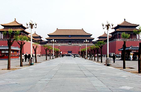 在紫禁城前兩側還有二組重要建筑群,東側是太廟,奉祀皇帝歷代祖先,這是皇權世襲神圣不可侵犯的象征;西側是社稷壇,壇上鋪五色土——東青土、南紅土、西白土、北黑土、中黃土。土由各地州府送來,這意味著“普天之下,莫非王土”。這兩組象征意義極強的建筑是根據(jù)傳統(tǒng)的“左祖右社”的形制來布置的。