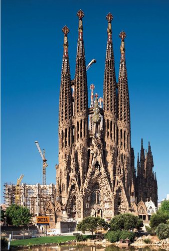 高迪早期作品都有精心繪制的圖紙,以后僅畫草圖,主要靠模型推敲設(shè)計(jì),在漫長(zhǎng)的設(shè)計(jì)周期中反復(fù)推敲、精益求精,幾乎是無(wú)止境地追求藝術(shù)上的完美,是名副其實(shí)的研究性設(shè)計(jì)。教堂設(shè)計(jì)的后期反映高迪的創(chuàng)作思想進(jìn)一步發(fā)展,造型趨向純凈、抽象和粗獷??上Ц叩喜](méi)有將設(shè)計(jì)最終完成,未完成的教堂以成為建筑藝術(shù)上的重要里程碑。令人不解的是教堂至今始終不停地在建設(shè),據(jù)說(shuō)是根據(jù)高迪藝術(shù)傳人的理解在進(jìn)行,連天才本人還不滿意的作品,一般傳人怎么有能力去完成呢?