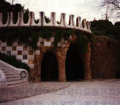 當(dāng)然,他更沒(méi)有忘記為他的至友古埃爾效力??梢哉f(shuō),古埃爾跟高迪一樣也是一位幻想家。1900年他突發(fā)奇想,決定建造一座花園式城市。這是一個(gè)極為宏大的計(jì)劃。為此,他在巴塞羅那郊區(qū)買了一座光禿禿的山頭,打算就在這里建設(shè)“古埃爾公園”——巴塞羅那上流社會(huì)的富人居住區(qū)。