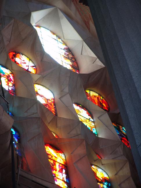 圣家族大教堂內(nèi)里玻璃花窗近看