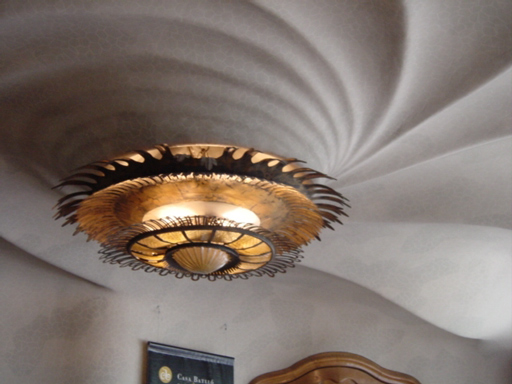 在高迪的眼中,一切靈感來(lái)源于自然和幻想:海浪的弧度、海螺的紋路、蜂巢的格致、神話人物的形狀,都是他酷愛采用的表達(dá)思路,他痛恨硬邦邦的直線,樂(lè)于用柔和的曲線和五彩的顏色表達(dá)一切,甚至每一個(gè)煙囪的造型、每一塊磚的擺法,他都有興趣玩味半天。因此他承包的工程都成了鴻篇巨制,古埃爾公園整整耗費(fèi)了14年,而圣家族直到他死后仍未竟,如果投資穩(wěn)定(每年需耗資300萬(wàn)美元)的話,至少也得再建65年方可竣工。