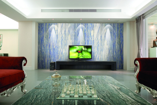 基本特征:藍(lán)海是一種藍(lán)色的大理石,它的表面紋理變化分為直紋和亂紋,質(zhì)感柔和,高雅華貴。