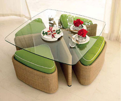 有一些日式風格的茶幾(材質(zhì)是玻璃和柳條)