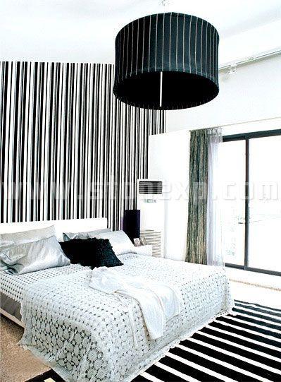 用黑白條紋布置臥室,運(yùn)用在墻面、地毯、吊燈上,強(qiáng)烈的成熟、穩(wěn)重風(fēng)格就打造而成了。在這樣的臥室中營(yíng)造優(yōu)雅感,要依靠帶有鏤空花朵圖案的白色針織繡品。將其大面積地鋪陳在黑白條紋中,醒目而效果卓越,可以營(yíng)造充滿優(yōu)雅氣質(zhì)的臥室。