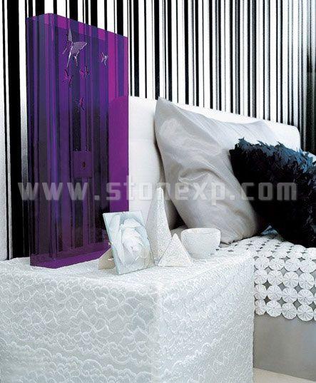 雅致的紫色運(yùn)用在黑白條紋的空間當(dāng)中,讓紫色的高貴和漂亮更加彰顯出來,也讓臥室充滿了流行和時(shí)尚的味道。搭配床品的優(yōu)雅感,床頭柜上也要罩上一塊能表現(xiàn)精致和優(yōu)雅的白色布藝,配上紫色臺(tái)燈,讓床頭的意境變得成熟而完美。