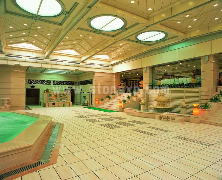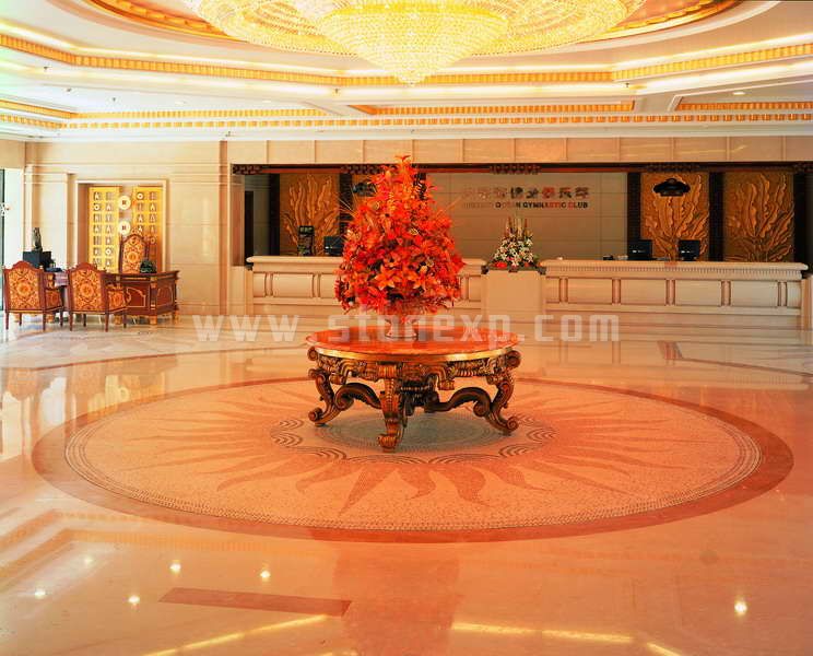 北京大東海健身俱樂部是高檔會所中經(jīng)典石材工程,石材的主要應(yīng)用于地面和水刀拼花,主要石材用料由環(huán)球石材公司提供。