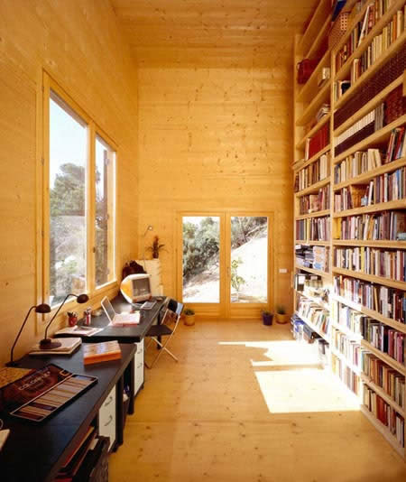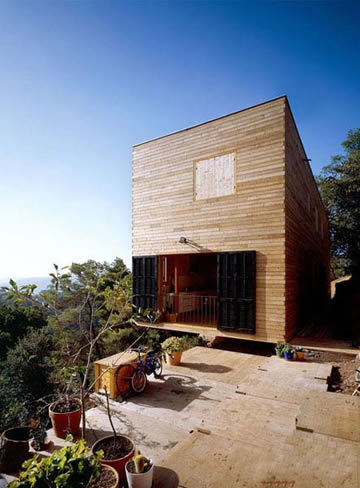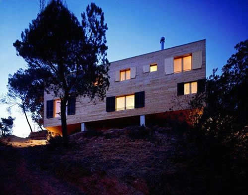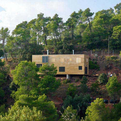 House 205木屋是由西班牙H事務(wù)所設(shè)計完成的,位于西班牙瓦卡里塞斯市。房子建在一個天然巖石地塊與兩個混凝土基座上,周圍環(huán)繞這小樹林,這個天然巖石地塊可作為花園使用。建筑師在設(shè)計時將對土地的改動降到了最低以創(chuàng)建一個人工景觀平臺,其目的及ushi要充分利用到現(xiàn)有的土地架構(gòu)。