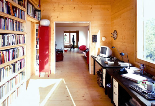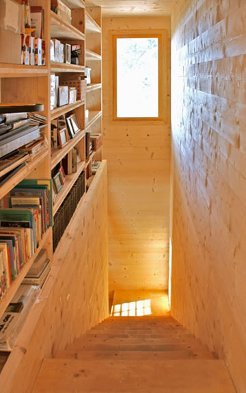 該房子用膠合板作為主要結(jié)構(gòu),而墻面和天花板則選用KLH板材。這種平衡設(shè)計既摒棄了傳統(tǒng)的層級結(jié)構(gòu)又不是無承重墻的笛卡爾架構(gòu)方法,而是將整個結(jié)構(gòu)作為一個整體來承重。而這使得大空間布局與大拱形設(shè)計成為現(xiàn)實。這些拱形將巖石與房子的幾何形狀融合在一起,弱化了巖石作為地基的外觀形象。