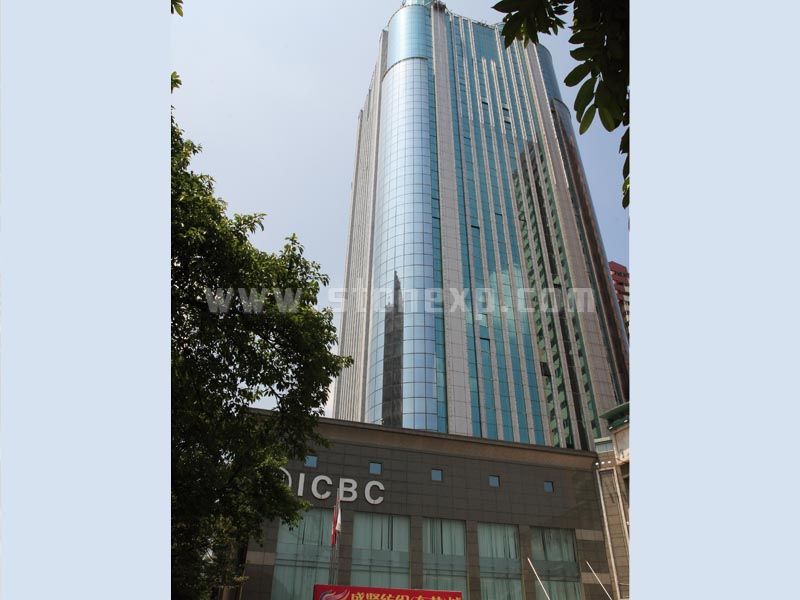 廣州工商銀行簡約時尚的造型具有國際化的特性,時尚的灰色天然石材進一步襯托出它這種不凡的氣質,使得整個石材工程簡約而不失高檔氣派。