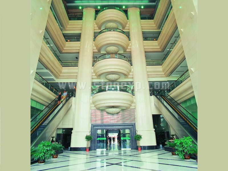 濟南農(nóng)業(yè)銀行是銀行業(yè)中又一經(jīng)典石材工程,其石材主要應(yīng)用位置為石材圓柱、弧板、地面拼花等,主要石材用料為莎安娜米黃。