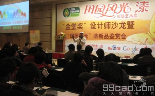 作為2011年金堂獎(jiǎng)全程合作伙伴, “田園風(fēng)光”漆在采訪會(huì)后進(jìn)行了新品賞析活動(dòng),闡釋了田園風(fēng)光漆品牌理念和年度新品性質(zhì)。作為一種低碳新材料,“田園風(fēng)光”漆得到了在場設(shè)計(jì)師和經(jīng)銷商的青睞,他們認(rèn)為,低碳選材除了綠色且貼合業(yè)主的需求價(jià)值和項(xiàng)目形式,也讓設(shè)計(jì)師擁有更多創(chuàng)意手段。在D+B博覽會(huì)上,金堂獎(jiǎng)優(yōu)秀設(shè)計(jì)作品展區(qū)沒有一塊展板,所有作品都是以電子展板形式展出,也正說明了金堂獎(jiǎng)在低碳選材方面的立場與堅(jiān)持。