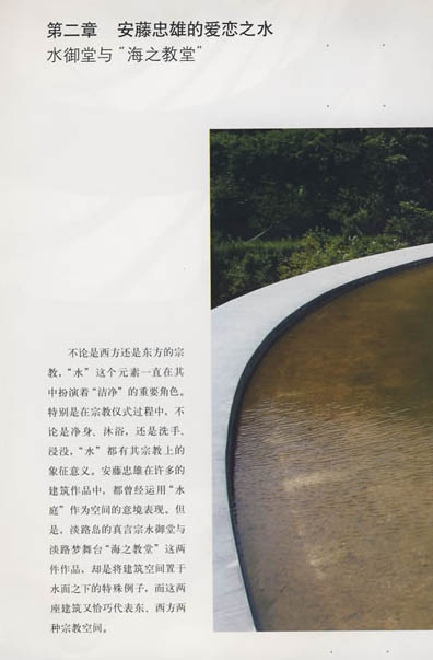 在他筆下,造訪建筑大師安藤忠雄的作品宛如一場性靈洗滌之旅。建筑本身像一座迷宮,你以為是出口的,其實(shí)是另一個(gè)奇異國度的入口;每一個(gè)轉(zhuǎn)彎都暗藏驚喜,每一個(gè)角度都別具風(fēng)景。更令人神往的是那些光、影、水形成的神秘空間,安藤巧妙地運(yùn)用了大自然的元素,讓建筑仿佛活起來,讓人有一種詩的感動。