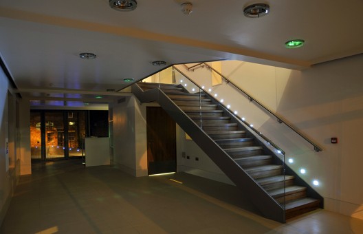 這個住宅是由一部分的教堂建筑改造而來,因為建筑的大部分已經(jīng)無法修復(fù),設(shè)計一開始就不打算模仿,而是打算創(chuàng)造完全新的形象。但是室內(nèi)的元素還是被保留了,如石頭的豎框,這些元素被清潔和修復(fù),產(chǎn)生與周圍環(huán)境的極大反差。材料色澤很簡單,同時呈現(xiàn)出高質(zhì)量的細(xì)節(jié)處理。為了打開已有的建筑,創(chuàng)造出垂直方向和水平方向上的流動,設(shè)計呈現(xiàn)出兩個獨特的樓梯,它們用來定義空間的造型。