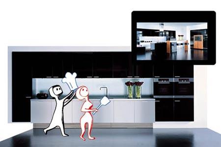 整個料理臺從天花板到地面可以完全配合整個建筑的風格,廚房設計優(yōu)雅簡潔,黑、灰、白的三種不銹鋼顏色搭配高級木頭,營造材質的高貴感,最重要是+INTEGRATION將廚房變成家居網絡溝通的一部分。 +INTEGRATION系統預先設置了網絡和電話連結的部分,就算是在廚房做飯時,也不需急忙跑到客廳接聽電話,可以在網絡上訂購你所需的食品材料或是搜索食譜,簡言之,+INTEGRATION是集合科技和設計的新世紀廚房。