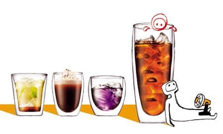 雙層玻璃杯可讓使用者享受咖啡、果汁、雞尾酒在優(yōu)雅的玻璃杯飄浮的視覺感受。來自瑞典品牌Bodum的咖啡壺、茶壺、杯子維持北歐溫馨純潔的風格,其商品深受亞洲、歐洲等國家歡迎。