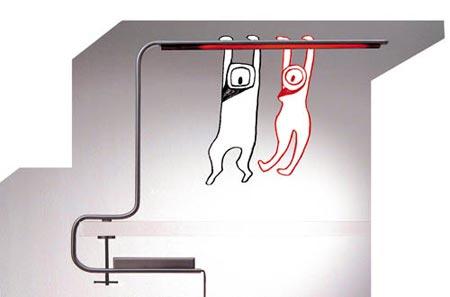 如一條固定在半空的緞帶,這個樸素無華的臺燈營造極限的美學,雖然燈臂和燈座簡單如彎曲的線條,卻絲毫不影響它的照明功能,低瓦的燈管使臺燈不至于炙熱,而紅色的燈管也是設計的一部分。設計中也簡化燈座,使其不占空間。令人驚奇喜歡搞怪的法國設計師 Ora-Ito為意大利著名的燈具大廠Artemide設計的臺燈竟然回歸數學般的理性,