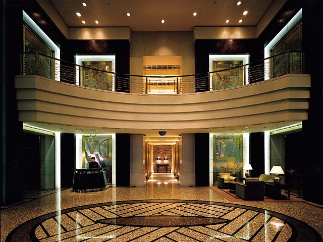 讓·菲利浦·海特(Jean-Philie Heitz)借鑒了ArtDeco裝飾藝術和現(xiàn)代藝術裝飾模式。酒店的內(nèi)部設計非常注意彰顯不同區(qū)域的個性,同時為了形成一種視覺上的連續(xù),不至于由于風格的過于強烈而形成跳躍感,設計時也十分小心地遵循協(xié)調(diào)一致的原則,其間的尺度就顯得相當微妙。