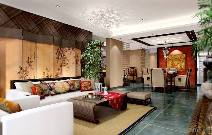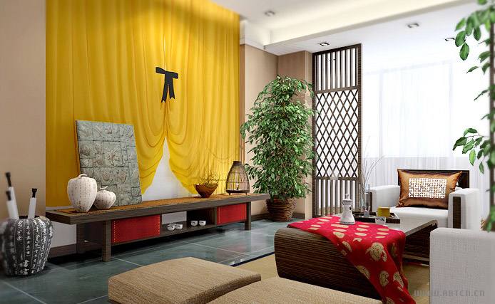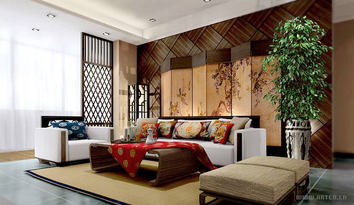 三是純樸自然的居室庭院化風情;這里指的庭院化不是花卉市場和建材城隨處可見的假山流水,而是利用卵石、木墩、天然毛石、小型木本植物等一些庭院道具,再加上采光、照明和空間圍合的現(xiàn)代手段將其與室內(nèi)自然地結(jié)合在一起。
