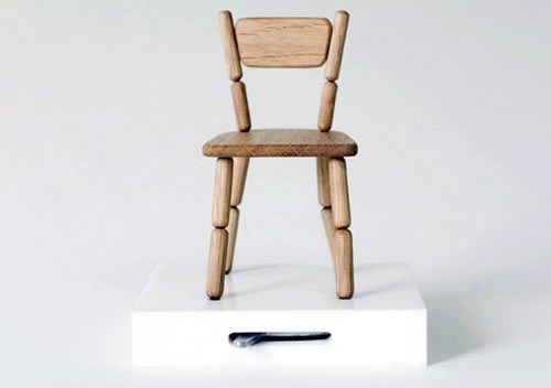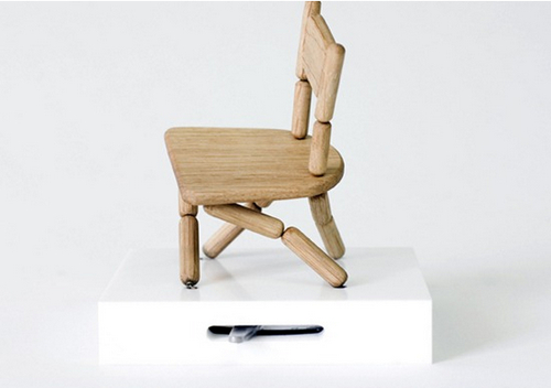 乍一看會不會覺得這臺子上堆了木柴準備生火?設計師只是把穿線木偶的創(chuàng)意移植到一把椅子上,就像我們小時候玩兒過的木偶玩具一樣。